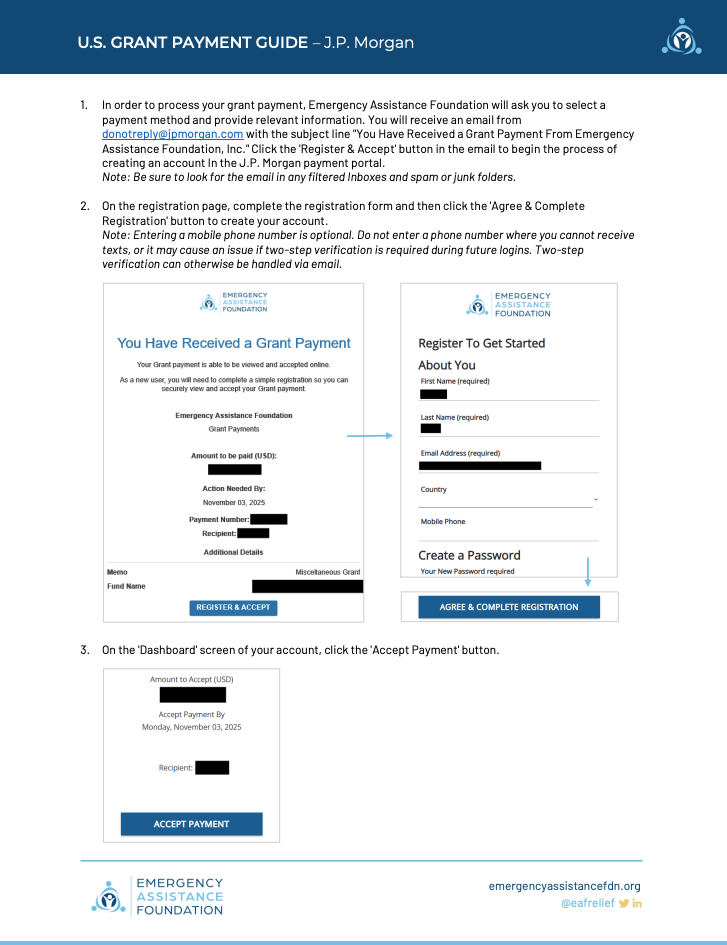 The content on this page is the property of Emergency Assistance Foundation (EAF) and may not be replicated or used outside of the intended purpose – to aid EAF Applicants and Grant Recipients – without EAF's written permission.
